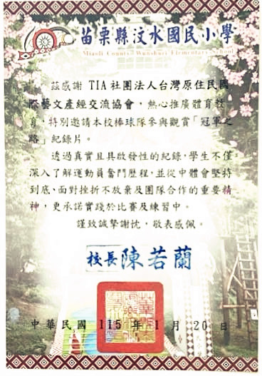 立委 林楚茵 邀請苗栗、桃園 原民少棒隊觀影《冠軍之路》 行政院長 卓榮泰 現身勉勵基層棒球 TIA原民協會共同響應 挺原民體育向下扎根 【台北訊】為推動原住民族體育教育、文化視野與影像素養,立法委員林楚茵於今(20)日邀請苗栗縣汶水國小與桃園市龍安國小原住民少棒隊師生北上共同參與紀錄片《冠軍之路》團體觀影活動。 本次由TIA社團法人台灣原住民國際藝文產經交流協會協辦,並安排體育教育與文化素養並行的校外見學,透過參觀大巨蛋球場及藝文場館,以及棒球主題的影像紀錄片,啟發孩子對體育精神、文化認同與國際視野之理解。 行政院長 卓榮泰 也特別到場支持這部記錄台灣榮耀時刻的棒球紀錄片,並在現場親切與少棒隊小朋友們互動,除了鼓勵小球員們持續練習,期許未來可如同片中選手為國爭光,同時表示將持續協助少棒與基層體育的發展。 立委林楚茵表示,原民棒球是臺灣體育的重要文化資產,將持續在立法院協助爭取資源,促進企業與民間合作,讓基層球隊能穩定發展。 本次放映的紀錄片《冠軍之路》由阿美族導演龍男執導,記録2024年世界棒球12強國家隊奪冠歷程,全程記録2024年世界棒球12強國家隊奪冠歷程,從旅外訓練、心理壓力、國家榮譽到國際競爭環境,展現臺灣棒球登上世界舞台的重要時刻。 協辦單位TIA社團法人台灣原住民國際藝文產經交流協會理事長張徐康群表示,協會已連續16年自辦「TIA原鄉盃少棒賽」,長期支持原住民基層棒球,民間力量雖有限,但協會仍堅持不放棄,「希望讓更多人看見這些熱愛棒球的原民孩子,也讓外界知道他們需要更多善心人士的支持。」 本次活動亦獲企業共同響應公益,金像電子及擎宇整合行銷共同贊助原民少棒隊加菜金,實際支持基層球隊日常訓練與生活所需,此外,蒙恬科技亦致贈AI掃譯筆,每隊各五支,協助孩子在學習與語言應用上獲得更多數位資源。